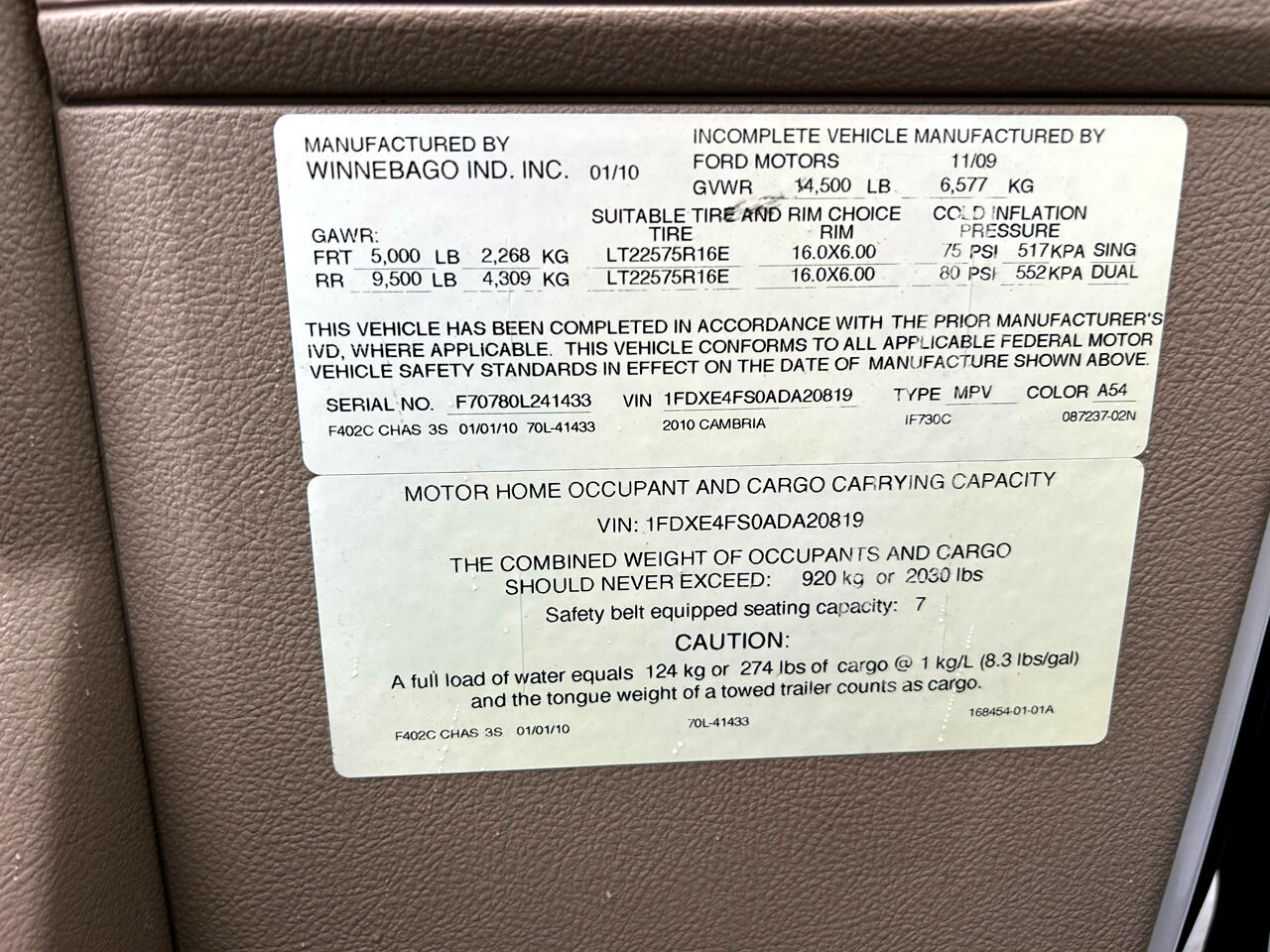 2010 Winnebago Itasca Cambria